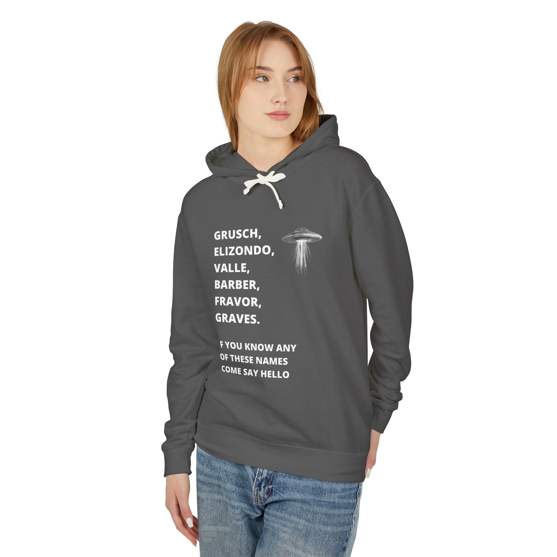Are you deep into the modern UFO/UAP conversation? Do names like Grusch, Elizondo, Vallée, Barber, Fravor, and Graves mean something to you? If so, this hoodie is a perfect way to find like-minded people in the wild!