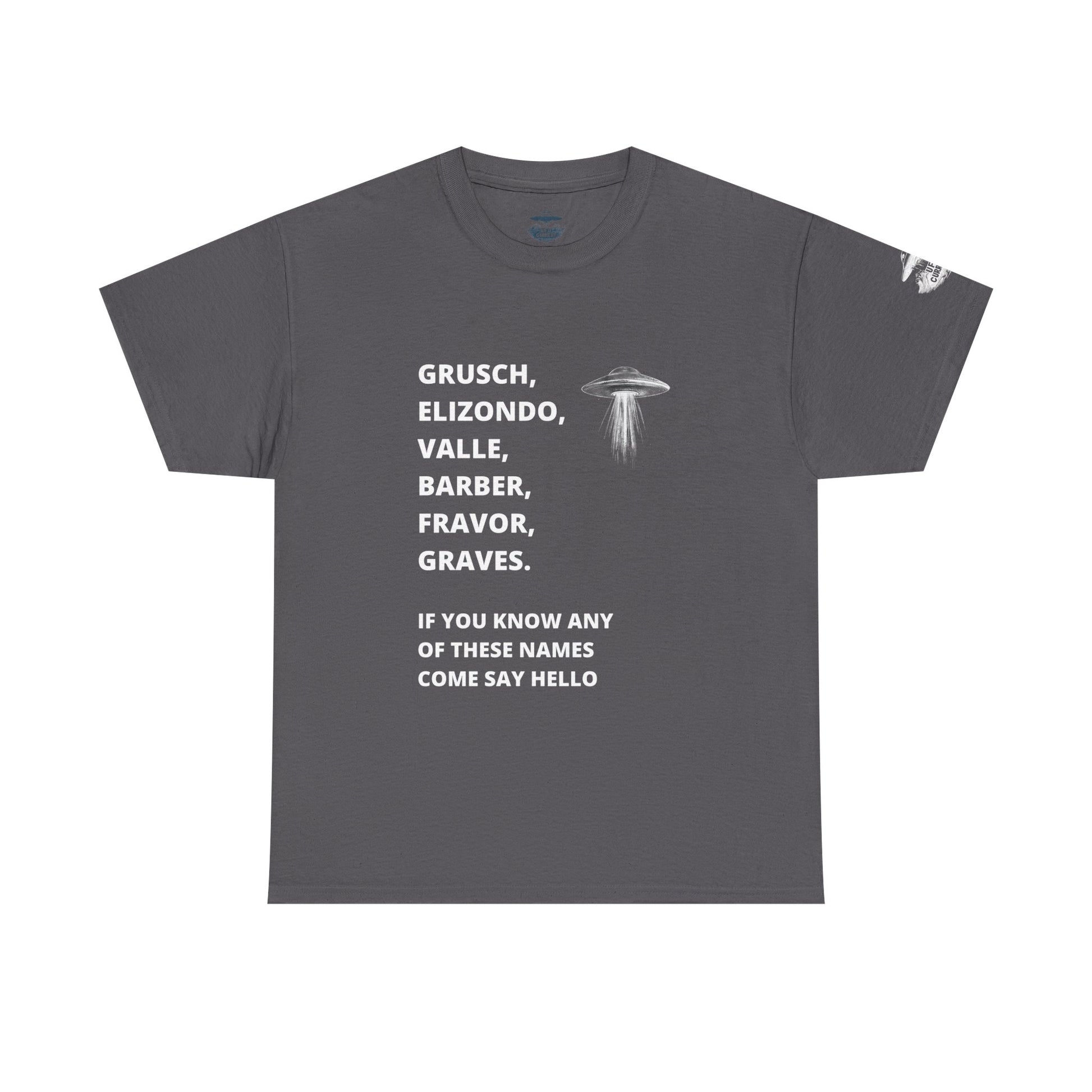 Are you deep into the modern UFO/UAP conversation? Do names like Grusch, Elizondo, Vallée, Barber, Fravor, and Graves mean something to you? If so, this shirt is a perfect way to find like-minded people in the wild!